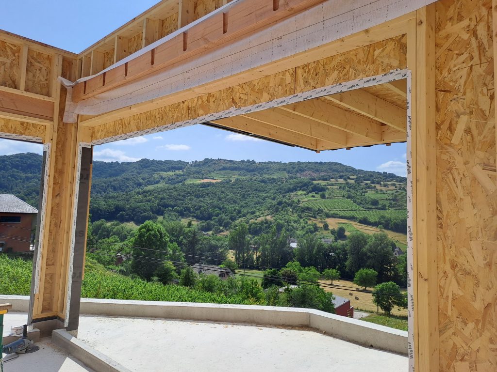 Au cœur du vallon de Marcillac, nous vous présentons cette construction de maison d’habitation en ossature bois, avec son solivage en lamellé-collé pouvant accueillir un toit terrasse et son bardage Vibrato autoclave marron…