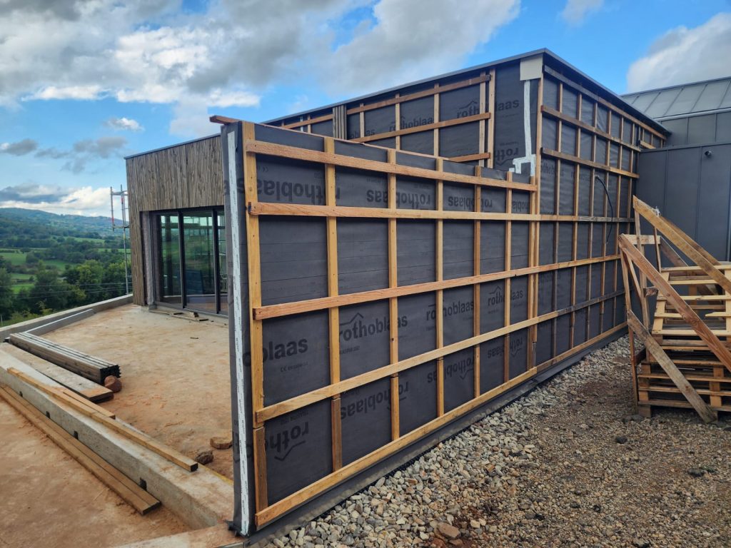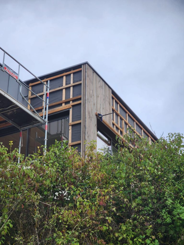 En plus de la charpente bois traditionnel et des murs en ossature bois, notre entreprise a réalisé l’isolation des murs ainsi que le bardage.