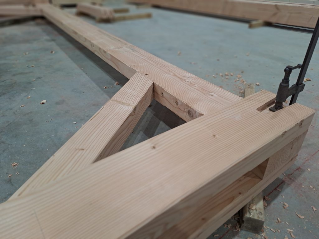 - la fabrication et la pose de la charpente traditionnelle neuve pour l’extension