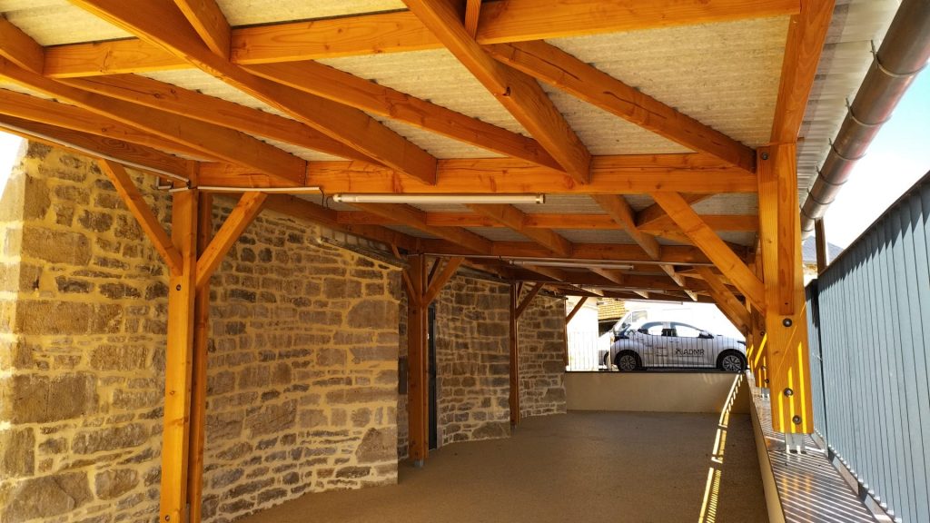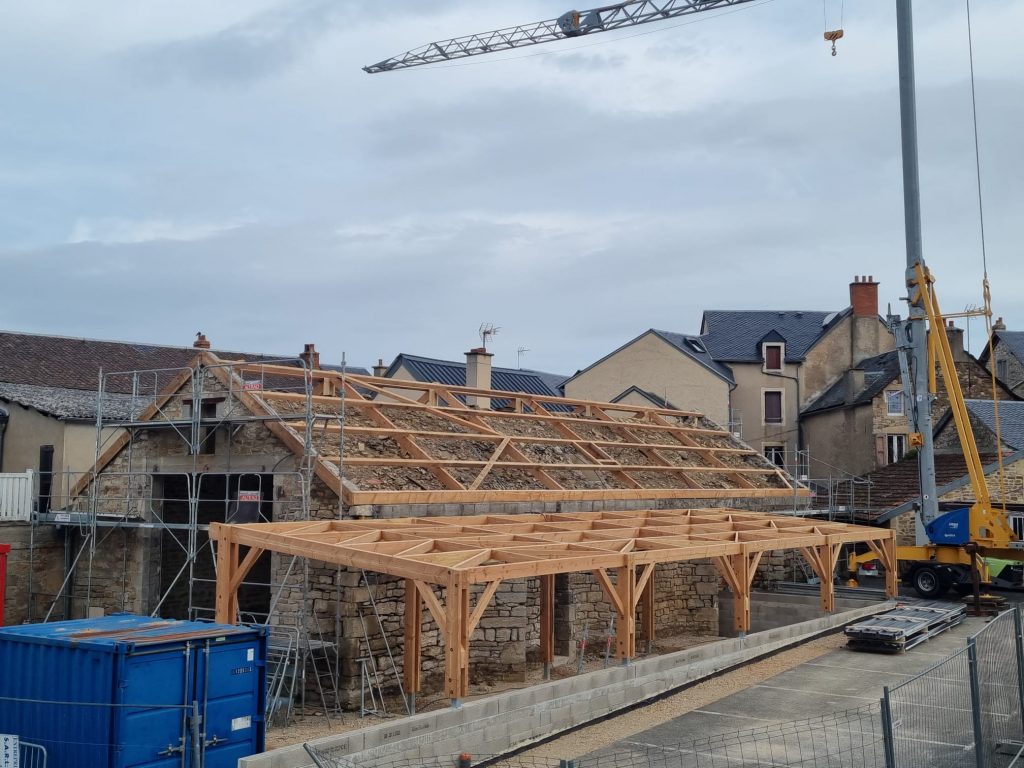 - la fabrication et la pose d’une charpente traditionnelle neuve sur la halle couverte